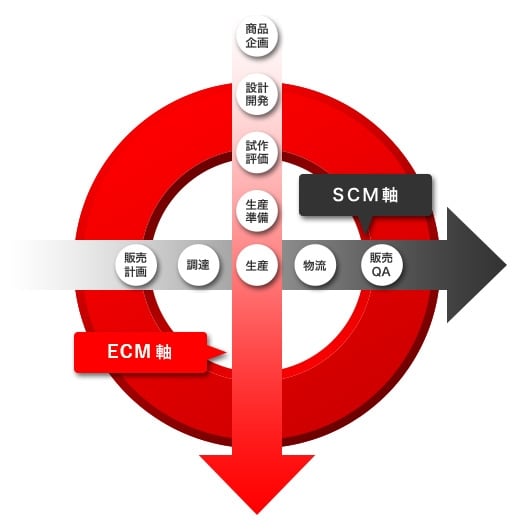 ブリヂストンの販売チャネルは、自動車メーカーに納品する「直需」、タイヤショップ等に履き替え用タイヤとして供給する「リプレイス」、海外輸出用の「エキスポ」の3つに分かれています。SCM軸では現在、それらのチャネルを含めたサプライチェーンマネジメント改革プロジェクトを推進。「必要なものを必要なだけ、必要なときに、必要な場所へ」提供できるシステムを構築し、販売、生産、物流が連携することで、顧客価値向上と業務の高効率化の実現を目指しています。